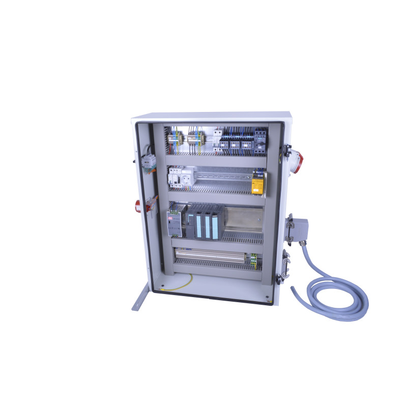 Vorverdrahteter Schaltschrank (MIT SPS) nach PAL-Standard-Bereitstellungsunterlagen (PDF im Downloadbereich), inkl. Stromversorgung.